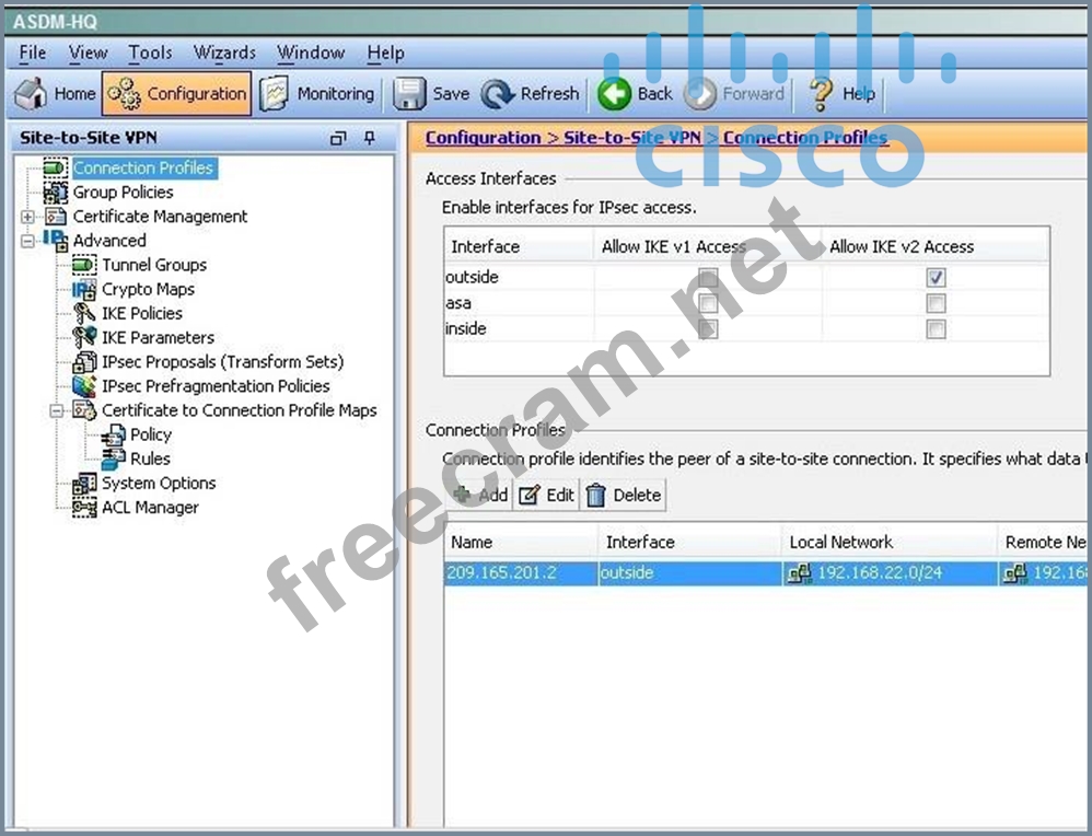 Question 42: Which two IKEv1 policy options must match on each peer when ...