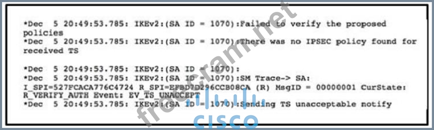 Question 39: Refer to the exhibit. What is the problem with the IKEv2 sit...