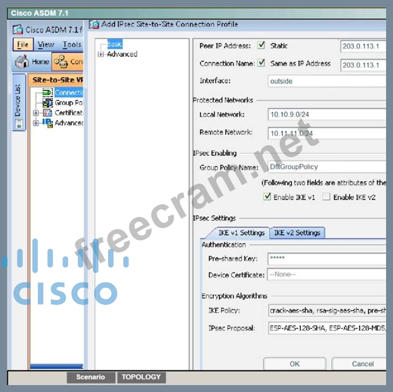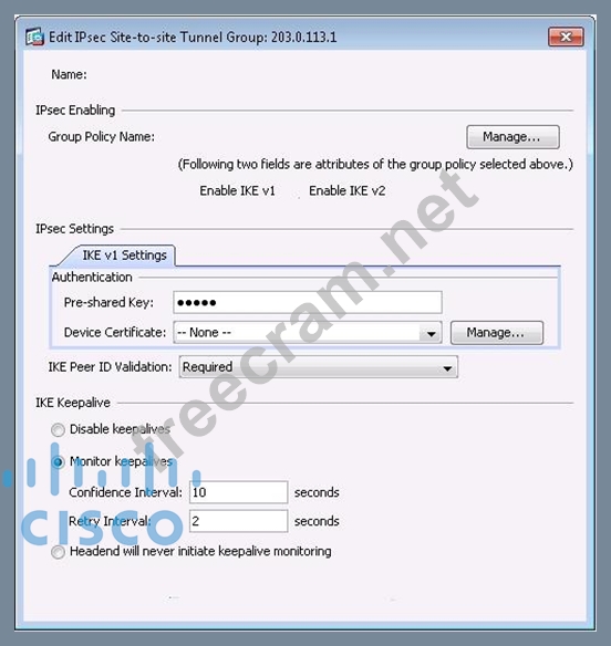 - Preshared key: cisco