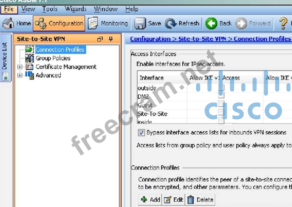 Enable IKEv1 on outside I/F for Site-to-site VPN