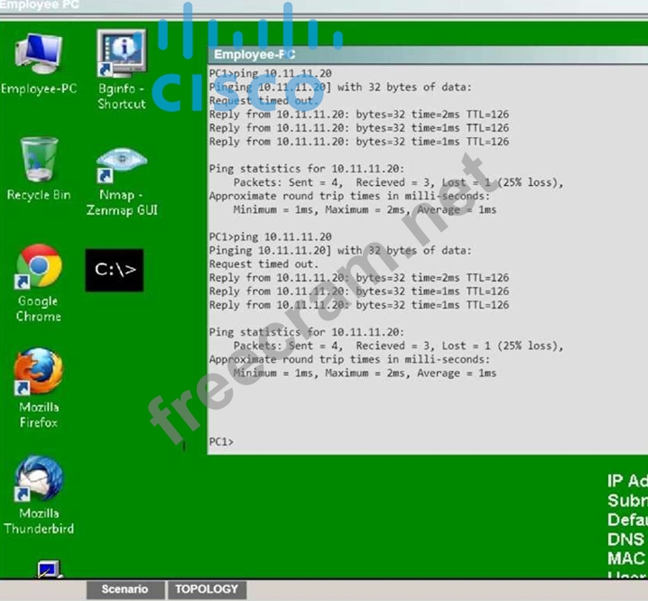 Establish the IPsec tunnel by sending ICMP pings from the Employee PC to the Branch Server at IP