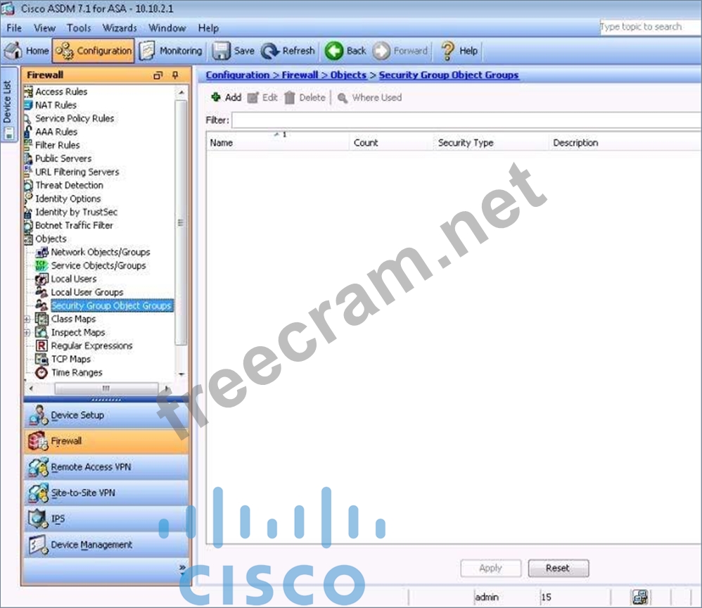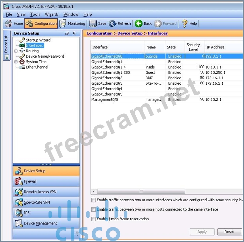 Use the following parameters to complete your configuration using ASDM. For this exercise, not all ASDM screens are active.