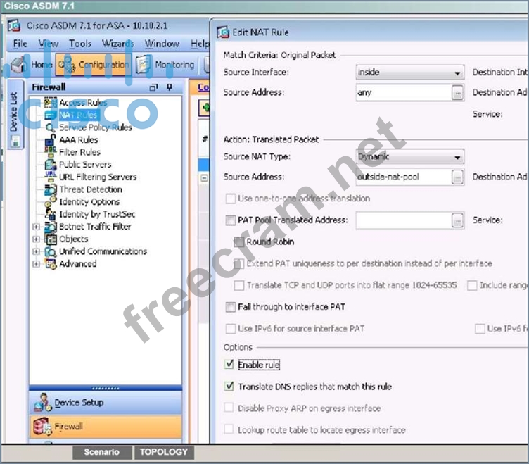 - Disable the outside NAT pool rule