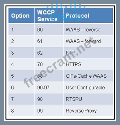 Which four rows exhibit the correct WCCP service to protocol assignments? (Choose four.)