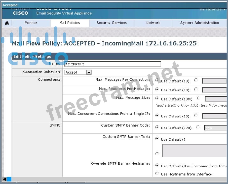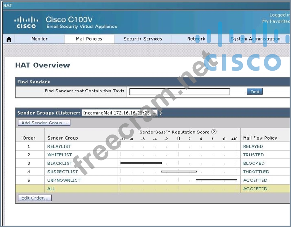 Question 56: (Exhibit) The Cisco Email Security Appliance will reject mes...
