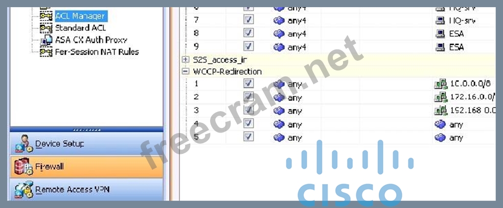 The Web Cache Communication Protocol (WCCP) is a content-routing protocol that can facilitate the redirection of traffic flows in real time. Your organization has deployed WCCP to redirect web traffic that traverses their Cisco Adaptive Security Appliances (ASAs) to their Cisco Web Security Appliances (WSAs).