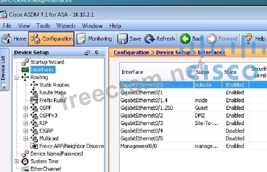 Question 122: During initial configuration, the Cisco ASA can be configure...