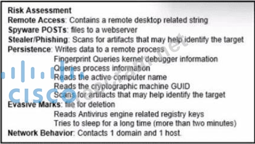 The exhibit lists several behaviors under categories such as Remote Access, Stealer/Phishing, Persistence, and Evasive Marks. Notably, under "Persistence" it states: