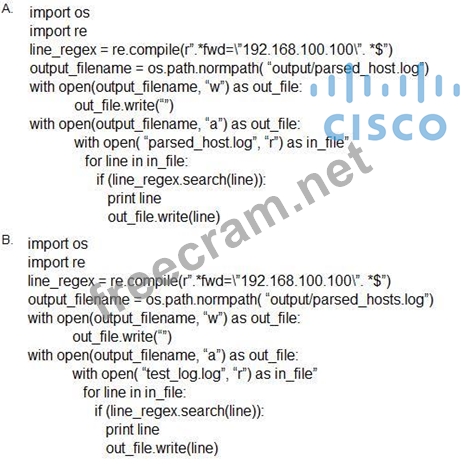 Reference:CyberOps Technologies (CBRFIR) 300-215 study guide, Chapter on "Investigating Host-Based Evidence and Logs" emphasizes scripting log parsing tasks using Python's regex and file I/O for filtering artifacts like IP addresses. Scripts should ensure proper source log input, pattern matching, result redirection, and optional output logging for forensics analysis.