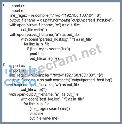 * Option D: Same IP address and logic as Option B, but uses print statement without parentheses, which is not valid in Python 3 unless using Python 2 - not ideal.