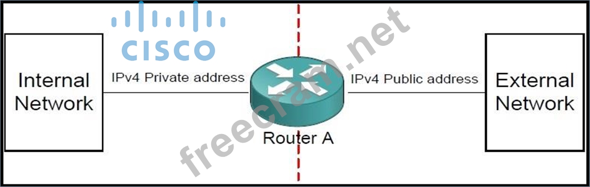 Refer to the exhibit. Which functionality must be enabled on router A to connect two networks for translating private addresses into "legal" public addresses on a one-for-one basis?