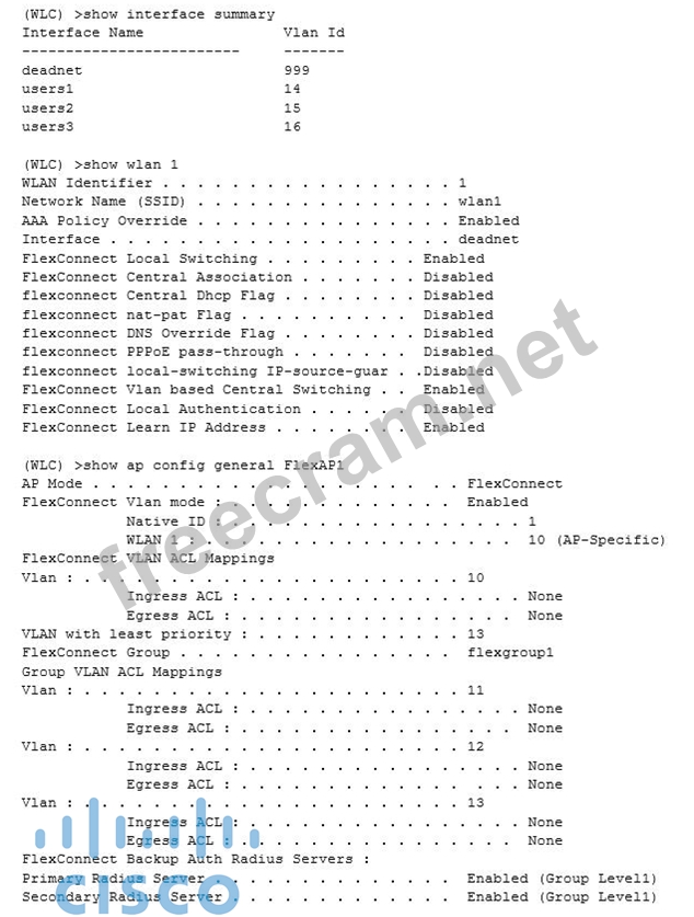 A wireless client is connecting to FlexAP1 which is currently working standalone mode. The AAA authentication process is returning the following AVPs: