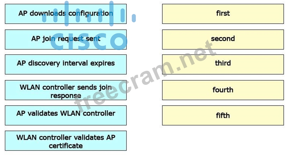 Drag and drop the Layer 3 WLAN controller mutual authentication join process events on the left into the order in which they occur on the right. Not all options are used.