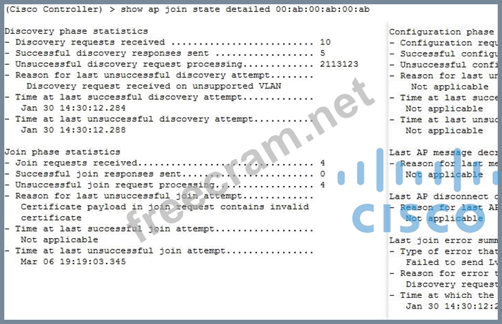Question 4: Refer to the exhibit. (Exhibit) The AP is unable to join the...