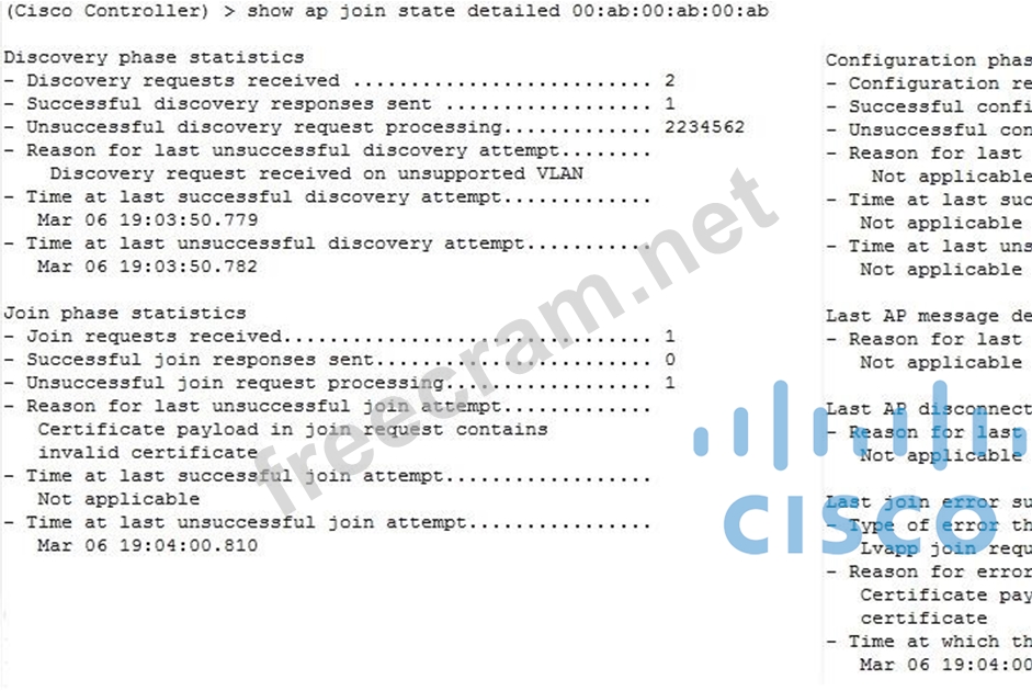Question 5: An engineer is troubleshooting AP join issues on a wireless ...