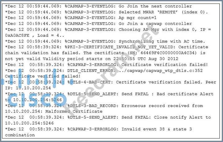 Question 26: You are troubleshooting an AP joining issue. You have captur...