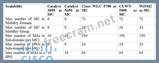 Question 22: How many mobility peers can a Cisco Catalyst 3850-MC node ha...