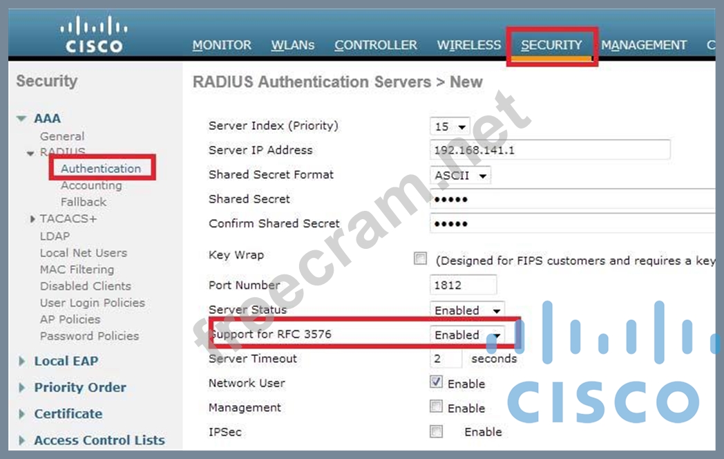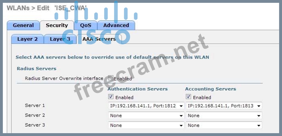Question 38: A Cisco WLC has been added to the network and Cisco ISE as a...