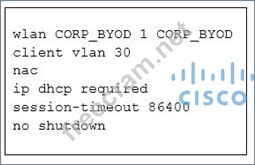 A network engineer must configure a WLAN on a Cisco IOS-XE controller to support corporate devices (using VLAN 30) and BYOD (using VLAN 40) on the same secure SSID. The security team has built an ISE deployment to be used for VLAN assignment and to restrict access based on policy and posture compliance.