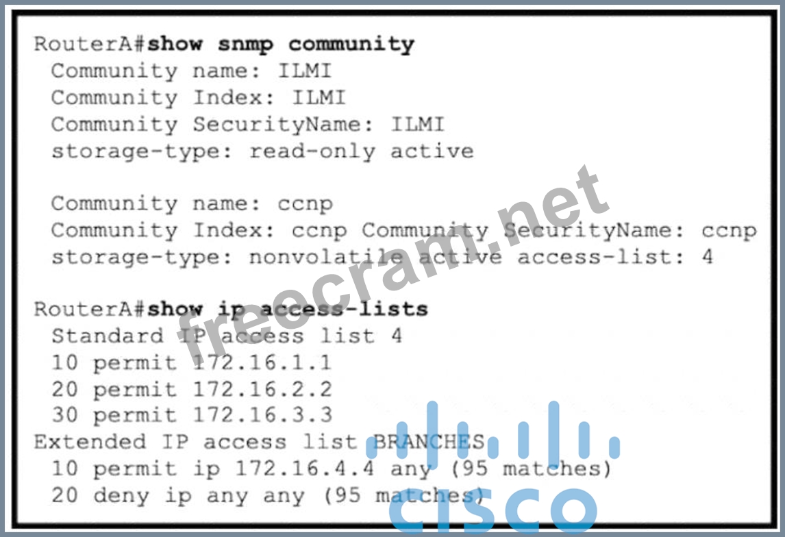 Refer to the exhibit The SNMP server with IP address 172.16 4 4 cannot access host router A Which configuration command on router A resolves the issue?