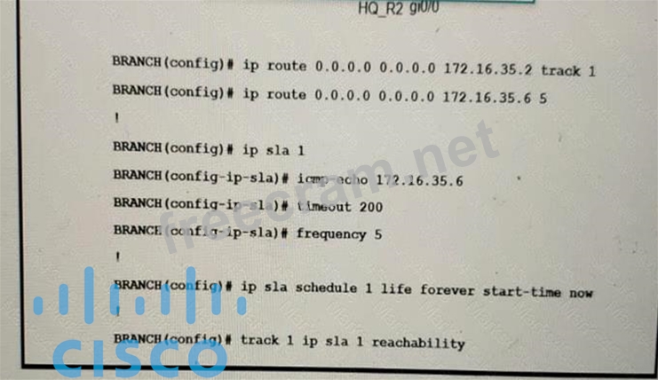 Refer to Exhibit. Traffic from the branch network should route through HQ R1 unless the path is unavailable. An engineer tests this functionality by shutting down interface on the BRANCH router toward HQ_R1 router but 192.168.20.0/24 is no longer reachable from the branch router. Which set of configurations resolves the issue?