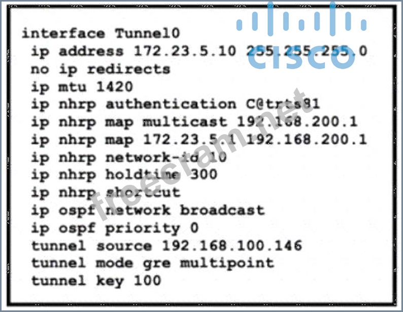 Question 173: (Exhibit) An engineer sets up a DMVPN connection to connect ...