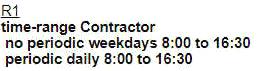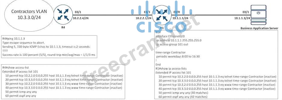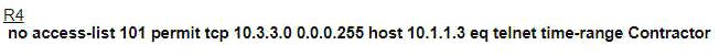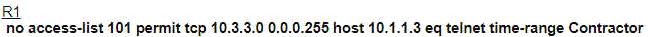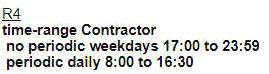 An engineer is troubleshooting failed access by contractors to the business application server via Telnet or HTTP during the weekend. Which configuration resolves the issue?