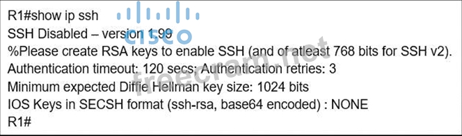 An engineer is trying to connect to a device with SSH but cannot connect. The engineer connects by using the console and finds the displayed output when troubleshooting. Which command must be used in configuration mode to enable SSH on the device?