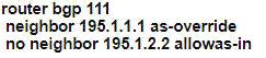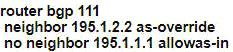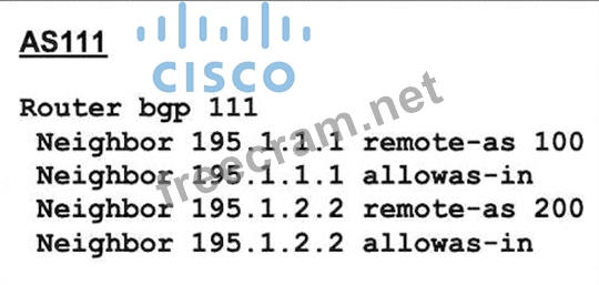 AS111 is receiving its own routes from AS200 causing a loop in the network. Which configuration provides loop prevention?