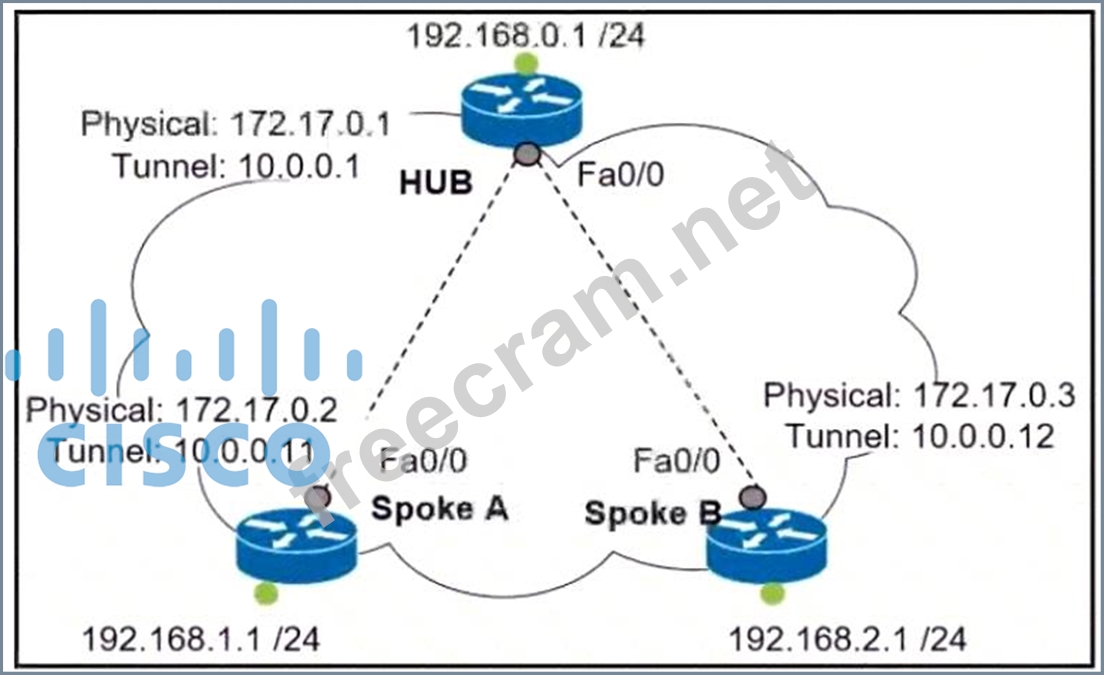 Question 188: (Exhibit) Refer to me exhibit. The hub and spoke are connect...