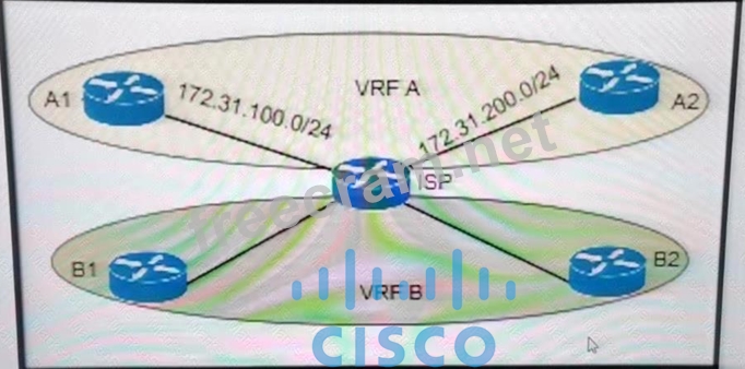 Refer to the exhibit. The ISP router is fully configured for customer A and customer B using the VRF-Lite feature. What is the minimum configuration required for customer A to communicate between routers A1 and A2?
