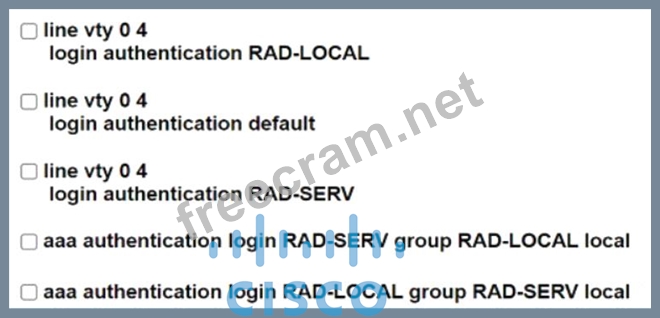 ISE has gone down. The Network Administrator is not able to Telnet to R1 when ISE went down. Which two configuration changes will fix the issue? (Choose two.)