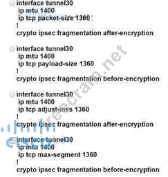 A network administrator must optimize the segment size of the TCP packet on the DMVPN IPsec protected tunnel interface, which carries application traffic from the head office to a designated branch. The TCP segment size must not overwhelm the MTU of the outbound link.