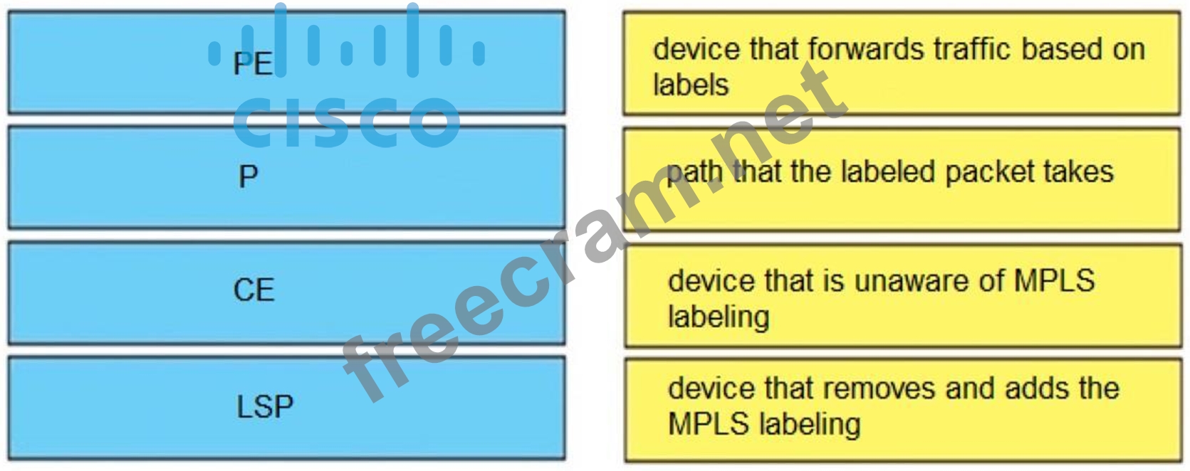 Drag and drop the MPLS terms from the left onto the correct definitions on the right.