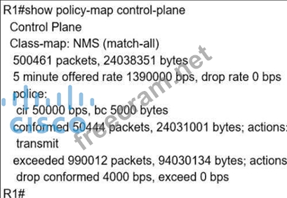 The class-map NMS in the exhibit did not classify traffic into specific protocols so many packets were dropped. We should create some class-map to classify the receiving traffic. It is also a recommendation of CoPP/CPP policy: "Developing a CPP policy starts with the classification of the control plane traffic. To that end, the control plane traffic needs to be first identified and separated into different class maps." https://tools.cisco.com/security/center/resources/copp_best_practices