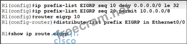 Refer to the exhibit. A prefix list is created to filter routes inbound to an EIGRP process except for network 10 prefixes. After the prefix list is applied no network 10 prefixes are visible in the routing table from EIGRP. Which configuration resolves the issue?