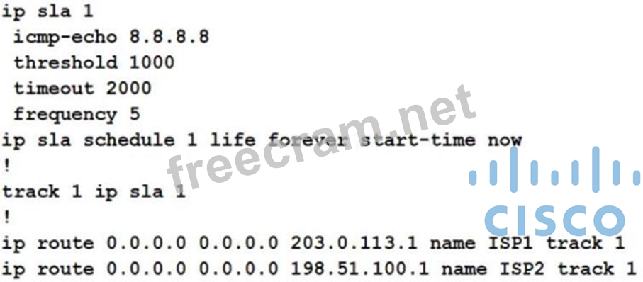 Question 19: Refer to the exhibit. An IP SLA is configured to use the bac...