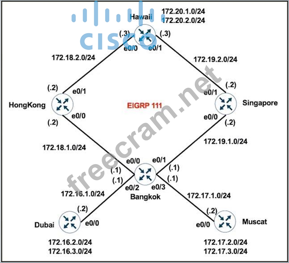 Question 241: Refer to the exhibit. Routers R1, R2, R3, and R4 use EIGRP. ...