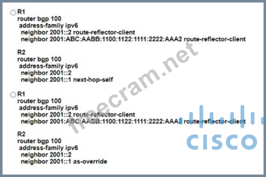 Question 206: Refer to the exhibit. The R1 and R2 configurations are: (Exh...