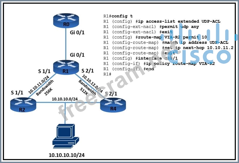 Question 229: Refer to the exhibit. Which policy configuration on R1 forwa...