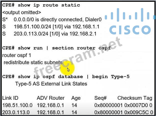 Question 249: Refer to the exhibit. The OSPF routing protocol is redistrib...