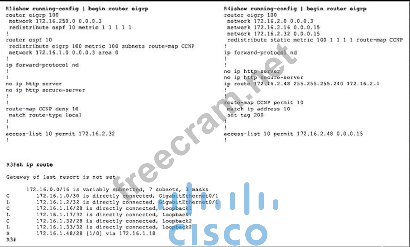 Question 203: Refer to the exhibit. Which subnet is redistributed from EIG...