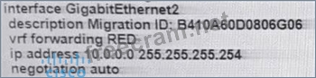 An engineer is implementing a coordinated change with a server team. As part of the change, the engineer must configure interlace GigabitEthernet2 in an existing VRF "RED" then move theinterface to an existing VRF "BLUE" when the server team is ready. The engineer configured interface GigabitEthemet2 in VRF "RED" Which configuration completes the change?