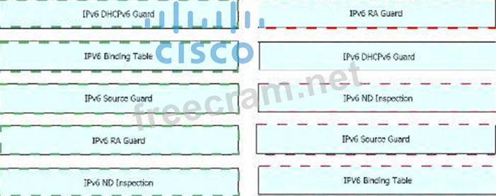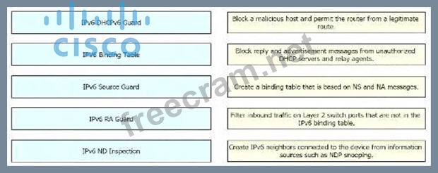 Drag and Drop the IPv6 First-Hop Security features from the left onto the definitions on the right.