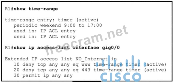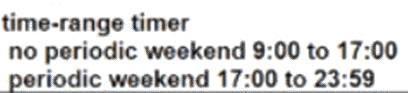 Refer to the exhibit. Users on a call center report that they cannot browse the internet on Saturdays during the afternoon. Which configuration resolves the issue?