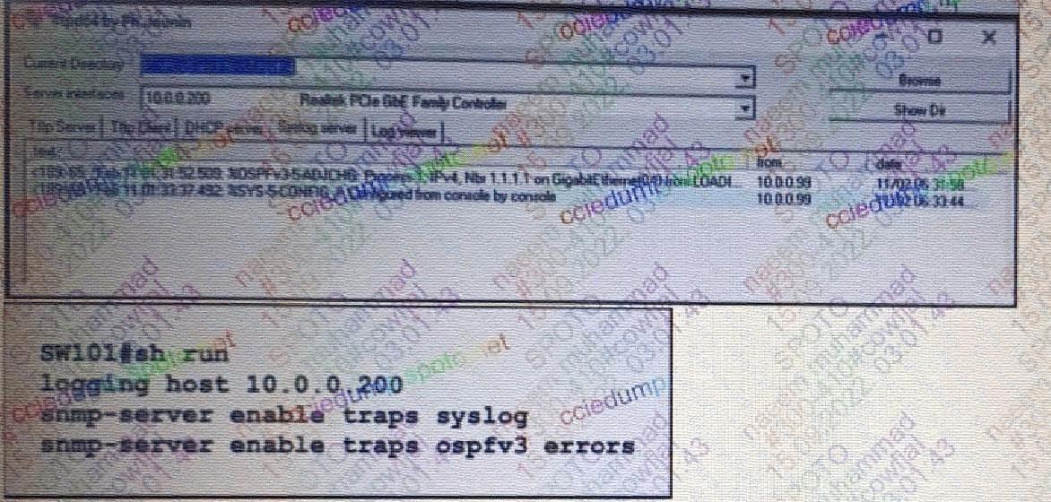 An engineer configures SW101 to send OSPFv3 interfaces state change messages to the server. However, only some OSPFv3 errors are being recorded. which organization resolves the ..?