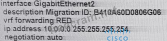 An engineer is implementing a coordinated change with a server team. As part of the change, the engineer must configure interlace GigabitEthernet2 in an existing VRF "RED" then move theinterface to an existing VRF "BLUE" when the server team is ready. The engineer configured interface GigabitEthemet2 in VRF "RED" Which configuration completes the change?