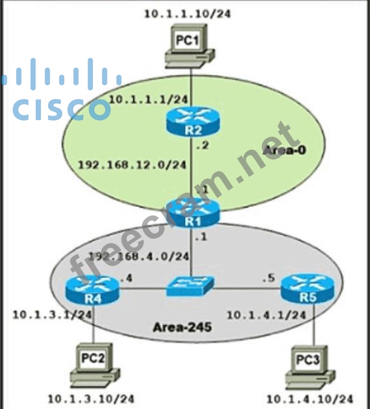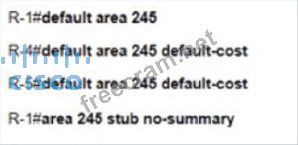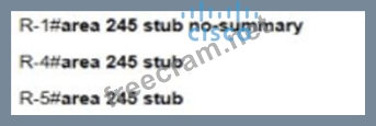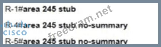 Refer to the exhibit A network administrator is troubleshooting to reduce the routing table of R4 and R5 to learn only the default route to communicate from Inter-Area and Intra-Area networks Which configuration resolves the issue?