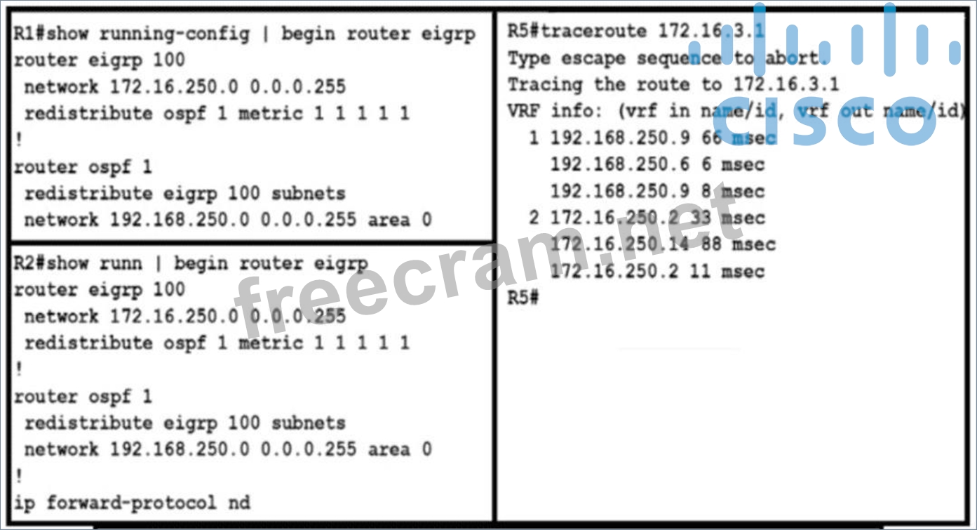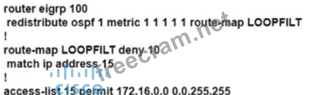 Question 243: Refer to the exhibit. (Exhibit) Which subnet is redistribute...