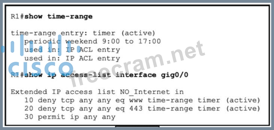 Refer to the exhibit. Users on a call center report that they cannot browse the internet on Saturdays during the afternoon. Which configuration resolves the issue?